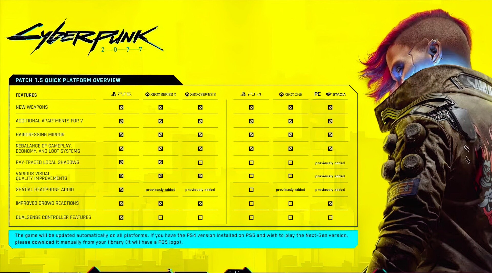 Darüber hinaus kommt ein neuer Patch, mit Version 1.5 führt CD Projekt Red unter anderem ein neues Skill-System mit neuen Fähigkeiten ein, NPCs sollen intelligenter reagieren, das Aussehen des eigenen Charakters kann nun jederzeit verändert werden, Night City wird um neue Bezirke erweitert und zahlreiche Kleinigkeiten wurden überarbeitet, um das Spielerlebnis aufzuwerten.