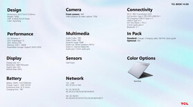 Erstmals kündigt TCL mit dem TCL Book 14 Go auch ein eigenes Laptops an. Das TCL Book 14 Go Notebook zeigt sich im schlanken Design mit Abmessungen von 324 x 214 x 14 Millimetern, einem Gewicht von 1,3 Kilogramm und 14,1-Zoll-Display, das eine Auflösung von 1.366 x 768 Pixeln bietet. Angetrieben wird das TCL Book 14 Go von einem Qualcomm Snapdragon 7c mit integrierter Adreno 618 GPU, der von 4/128 GB Speicher unterstützt wird. Zur weiteren Ausstattung des Book 14 Go gehören unter anderem ein eingebautes 4G LTE-Modem, Wi-Fi 802.11ac, Bluetooth 5.1 und Laden über USB-C. Im unten angefügten Datenblatt zum Book 14 Go sind weitere Details zum Windows-Notebook zu finden. Im zweiten Quartal 2022 will TCL das Snapdragon-Laptop in verschiedenen Ländern und Regionen zu Preisen ab 349 US-Dollar auf den Markt bringen.