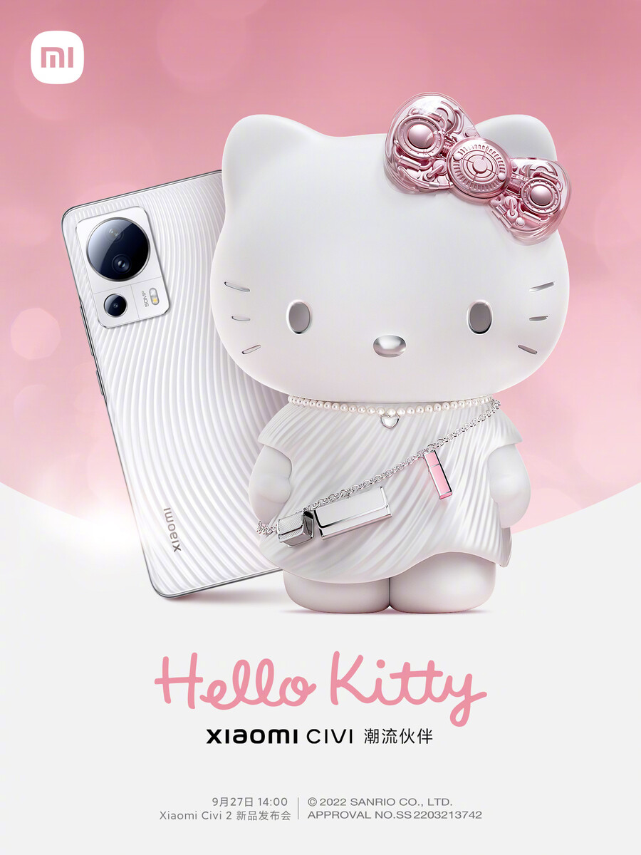 Xiaomi hat auf Weibo bekanntgegeben, dass das CIVI 2 am 27. September 2022 um 14 Uhr Ortszeit in China offiziell vorgestellt wird. Einhergehend mit dem ersten Teaser hat Xiaomi auch die allseits bekannte Hello Kitty als Partner gezeigt, sodass wohl von einer speziellen Edition ausgegangen werden kann.
