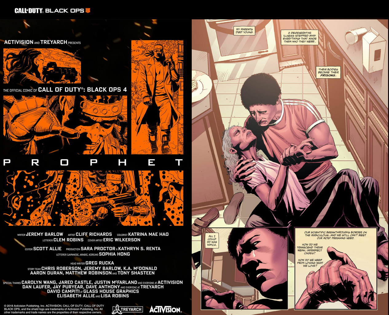 Die Comicserie ist kostenlos erhältlich unter www.CallofDuty.com/Comics und enthält Geschichten von Greg Rucka, Chris Roberson, Jeremy Barlow, K.A. McDonald, Aaron Duran, Matthew Robinson und Tony Shasteen. Das Cover-Art stammt von den Künstlern Adam Hughes, Eric Wilkerson, Kirbi Fagan, Dan Dos Santos und Julian Totino Tedesco.