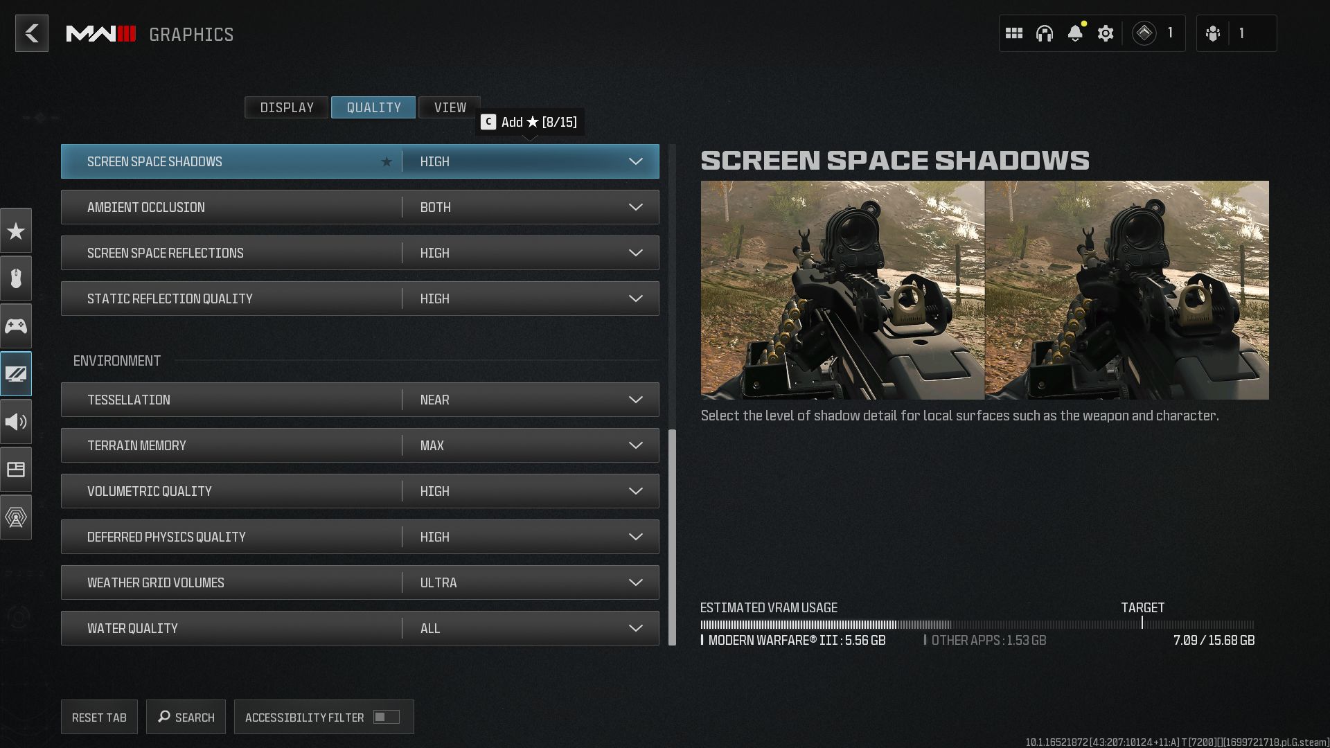 Davon abgesehen macht Modern Warfare 3 fast alles richtig. Neben Texterläuterungen enthalten manche Optionen auch praktische Vergleichsbilder, wie man sie primär von Ubisoft-Games kennt (z. B. The Crew Motorfest). Dazu gesellen sich stellenweise die Auswirkungen auf CPU, GPU und VRAM. Apropos Videospeicher: Eine VRAM-Anzeige wird im Grafikmenü standardmäßig eingeblendet. Allgemein punktet der Titel mit zahlreichen modernen Features. Allen voran Upscaling in Form von XeSS (Intel), FSR (AMD) und DLSS (Nvidia). Dass die meisten Änderungen keinen Neustart erfordern, ist ebenfalls löblich.