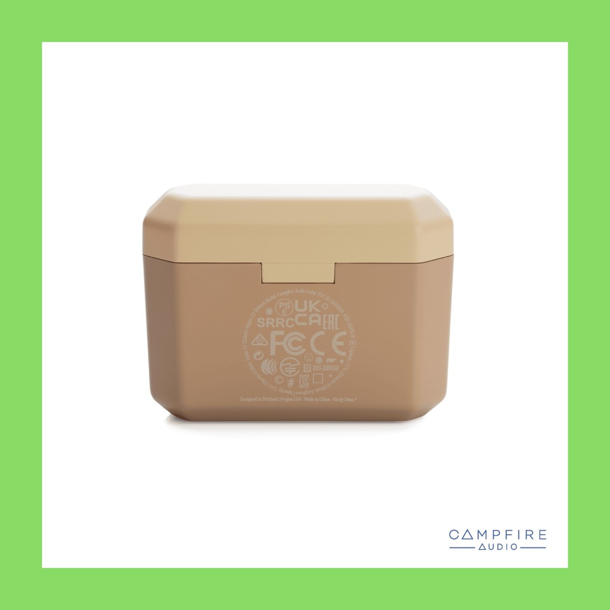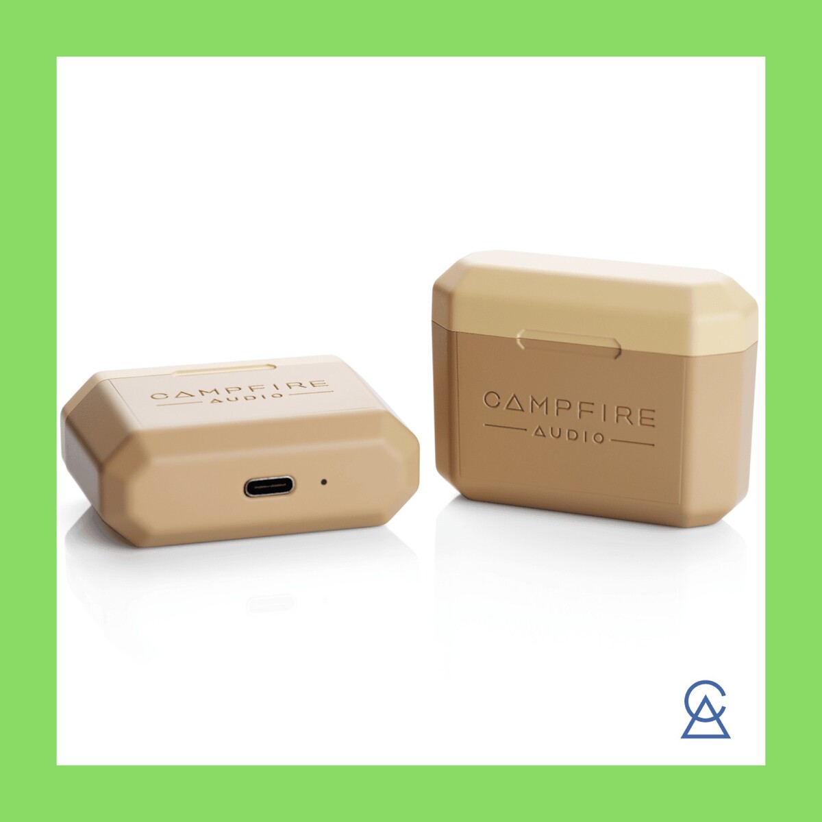 Das kantige Gehäuse erlaubt es Campfire Audio offenbar, größere Akkus zu verbauen, denn der Hersteller verspricht eine Laufzeit von 8,5 Stunden, oder aber 30 Stunden in Verbindung mit der Ladehülle. Geladen wird wahlweise über USB-C oder drahtlos. Die Ohrhörer sind nach IPX5 zertifiziert und somit gegen Schweiß und Regen geschützt.