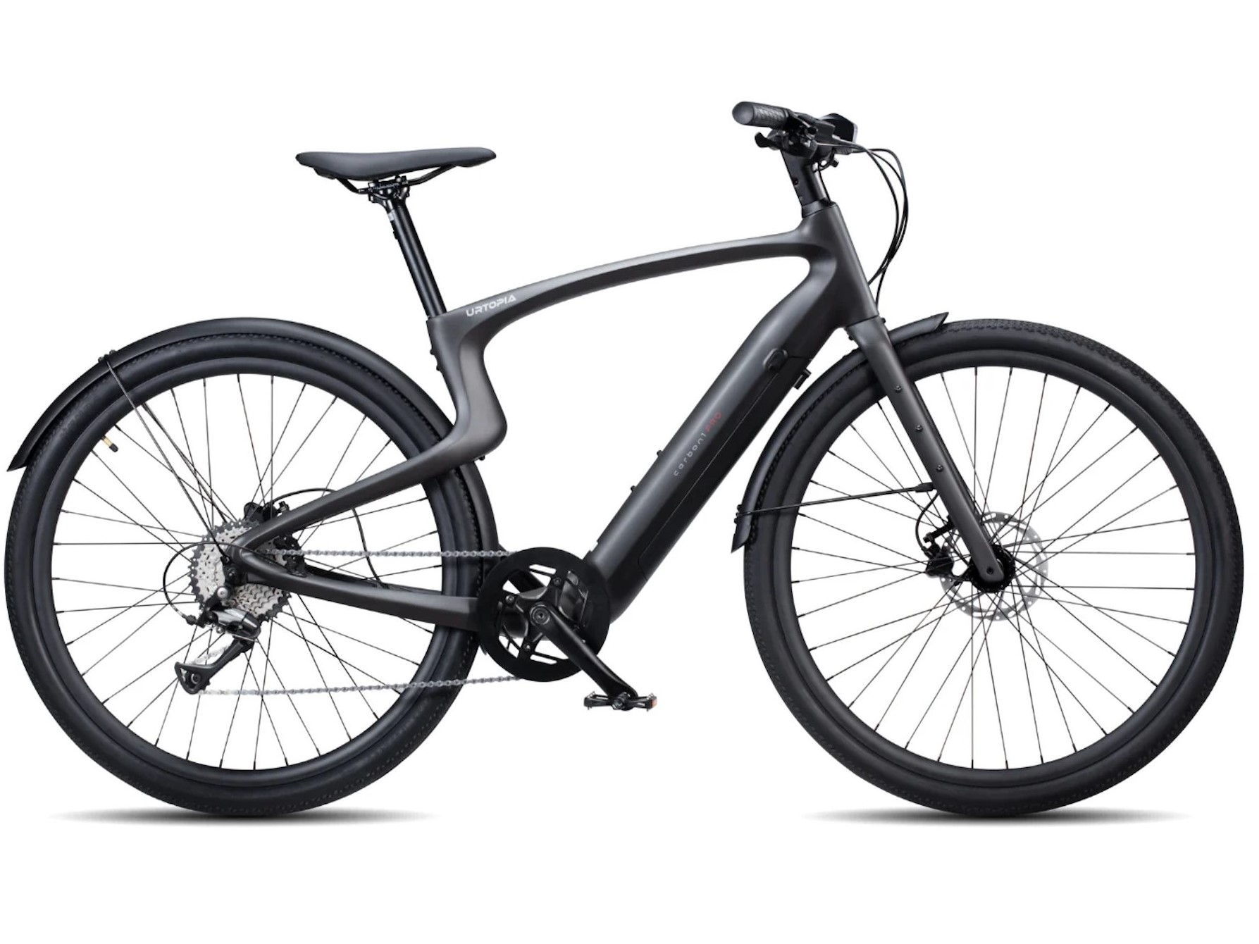 Das Carbon 1 Pro ist ab sofort erhältlich. Es handelt sich um ein gut ausgestattetes E-Bike, welches auch durch das spezielle Design überzeugen soll. Die Geometrie des Rahmens soll dabei nicht nur für eine spezielle Optik sorgen, sondern auch eine um 15 Prozent höhere Stabilität und einen geringeren Luftwiderstand möglich machen. Urtopia nutzt einen Carbon-Rahmen, ohne Anbauteile soll das Gewicht bei 17 Kilogramm liegen. Es kommt ein im Hinterrad montierter Nabenmotor mit einem Drehmoment von 45 Nm zum Einsatz. Der Akku nutzt Speicherzellen von Samsung und ist in den Rahmen integriert, kann allerdings entnommen werden. Die Kapazität liegt bei knapp 353 Wh, die maximale Reichweite wird mit 130 Kilogramm angegeben.