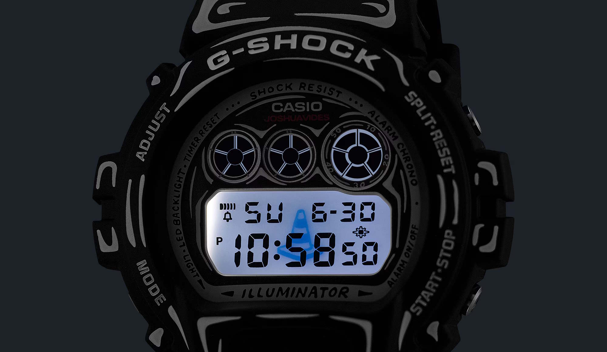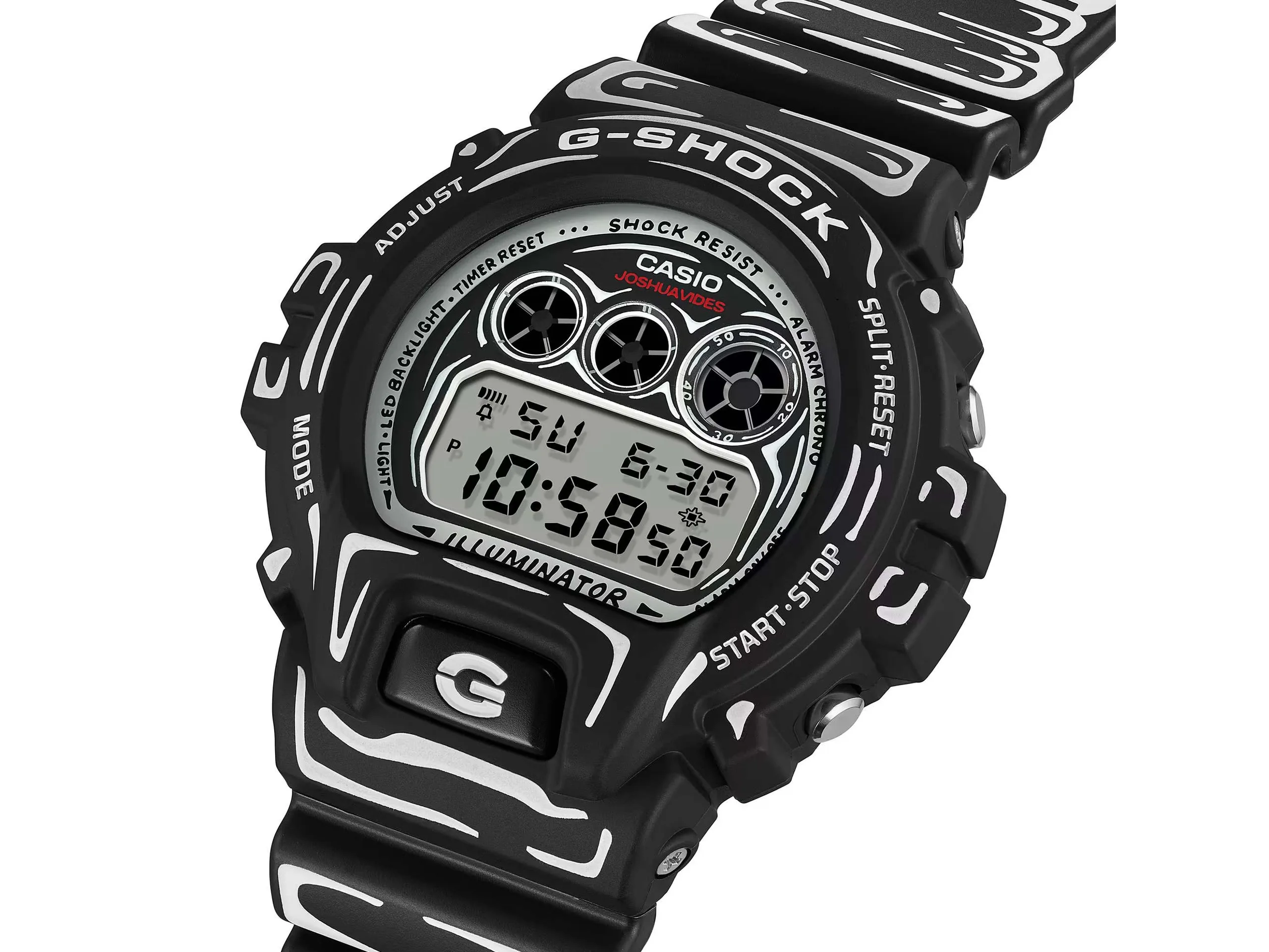 Casio ist natürlich primär einmal für seine ganz klassischen Digitaluhren bekannt, bietet aber ein faktisch kaum noch zu übersehendes Portfolio an verschiedenen Uhren. Ein großer Punkt für oder gegen den Kauf einer solchen, klassischen Uhr ohne Smartwatch-Funktionen dürfte natürlich auch die optische Gestaltung sein. Die ab sofort auch in Deutschland erhältliche DW-6900JV-1 ist dabei in Zusammenarbeit mit dem Künstler und Designer Joshua Vides entstanden. Die auf dem Uhrgehäuse sichtbaren Linien wirken dabei ein wenig wie mit der Hand gezeichnet, die Kontur wird fast schon ein wenig comichaft betont. Extrem dezent ist die Uhr damit nicht, da auf grelle Farben verzichtet wird, aber auch nicht sehr aufdringlich. Bei der Aktivierung der Hintergrundbeleuchtung gibt es dann sozusagen noch ein kleines Easter Egg: Dann wird mit dem Pylon ein Markenzeichen des Künstlers sichtbar.
