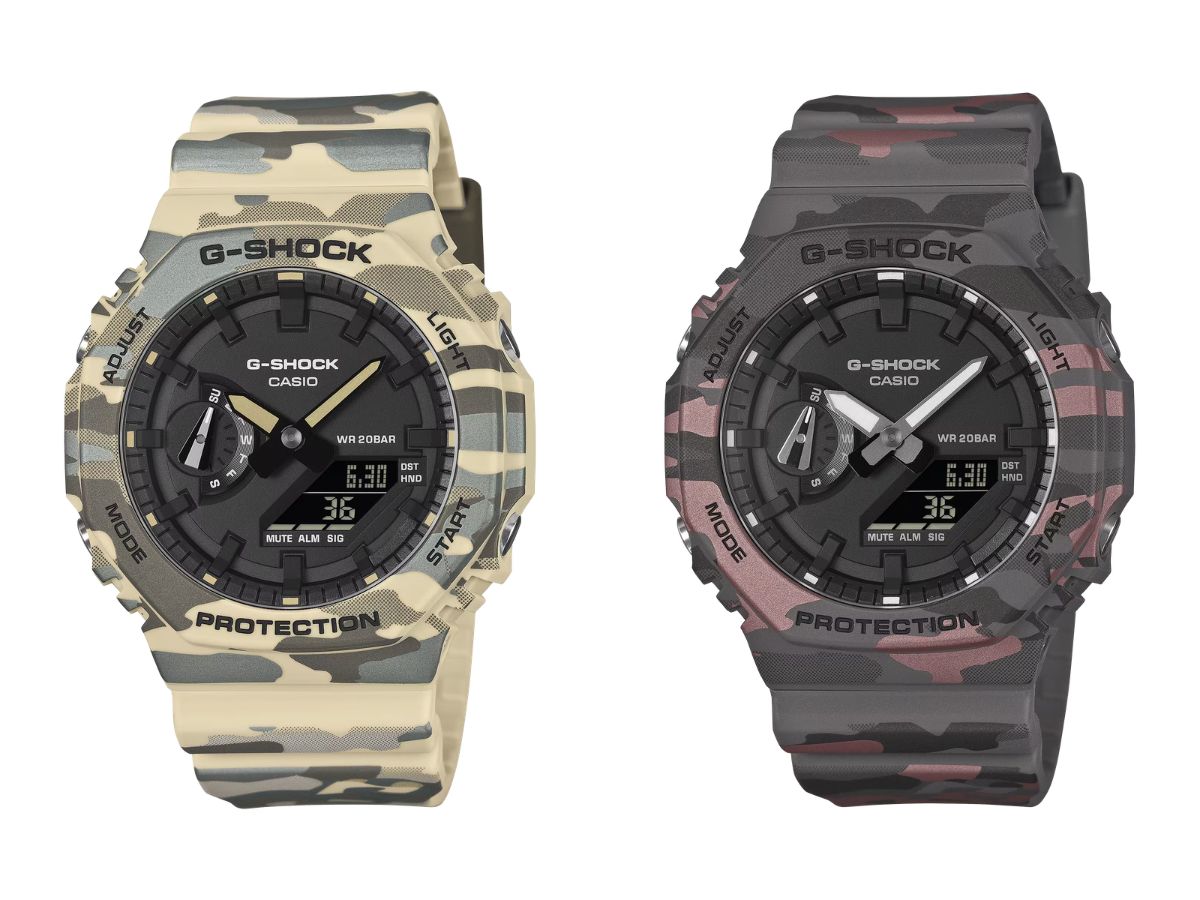 Casio hat die neuen G-Shock GA-2100 „Camouflage Cool“-Uhren in den EU-Ländern veröffentlicht. Die im Januar 2026 vorgestellten Modelle sind in anderen Märkten wie Großbritannien und den USA bereits erhältlich. Ab sofort können die Casio G-Shock-Modelle GA-2100CM-5A und GA-2100CM-8A für jeweils 139 Euro in den offiziellen Online-Shops der Marke in Ländern wie den Niederlanden, Spanien und Deutschland erworben werden.
