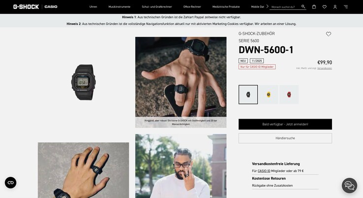 Wer Interesse hat, kann auf der Produktseite bereits eine E-Mail-Adresse hinterlegen, um über den Verkaufsstart benachrichtigt zu werden. Wer die Uhr bestellen möchte, sollte von dieser Möglichkeit Gebrauch machen, denn ähnlich wie die Casio Ring Watch könnte auch die G-Shock Nano schnell ausverkauft sein. Um die Uhr bestellen zu können, ist darüber hinaus eine kostenlose Casio ID erforderlich.