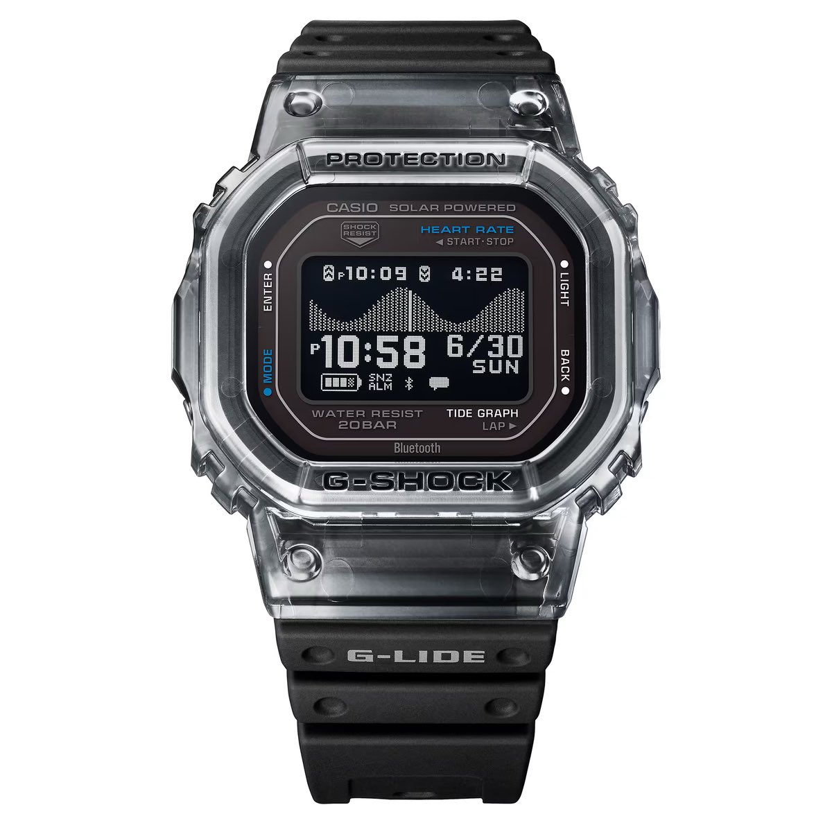 Die eckigen Uhren verbinden eine auf das Surfen zugeschnittene Optik mit den umfassenden Fitness-Tracking-Funktionen der G-Squad-Reihe und orientieren sich dabei stark an der beliebten GBX-100. Sowohl die schwarze GBX-H5600-1 als auch die blaue GBX-H5600-2 setzen auf ein transparentes Design mit sommerlicher Anmutung und bieten ein hochauflösendes, kontraststarkes MIP-LCD, auf dem sich Benachrichtigungen und Gezeitendiagramme auch bei direkter Sonneneinstrahlung problemlos ablesen lassen. Beide Modelle bestehen aus umweltfreundlichem Biokunststoff und wiegen nur 47 Gramm.