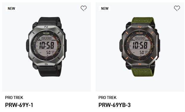 Neben den neuen Modellen Casio GMC-B2100 und GMW-BZ5000 hat Casio mit der PRW-69-Serie auch eine neue Pro-Trek-Reihe vorgestellt, zu der die PRW-69Y-1 und die PRW-69YB-3 gehören. Beide Modelle sollen im April 2026 erscheinen und basieren auf derselben technischen Grundlage. Unterschiede gibt es vor allem beim Armbandmaterial und bei der Farbgebung.