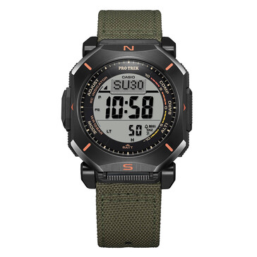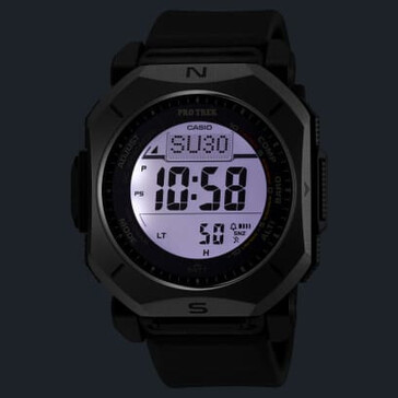 Es handelt sich um eine Uhr mit Triple Sensor. Zur Ausstattung gehören ein digitaler Kompass, ein Höhenmesser (-700 bis 10.000 m), ein Barometer mit Luftdruck-Trendgrafik und ein Thermometer. Entscheidend ist hier das Duplex-LCD: Die Kompassgrafiken wurden über die Hauptanzeige gelegt, um die Navigation in Echtzeit zu erleichtern. Laut Casio kann der Kompass bis zu 60 Sekunden ununterbrochen arbeiten, wobei die Richtungsverfolgung dynamisch angezeigt wird.