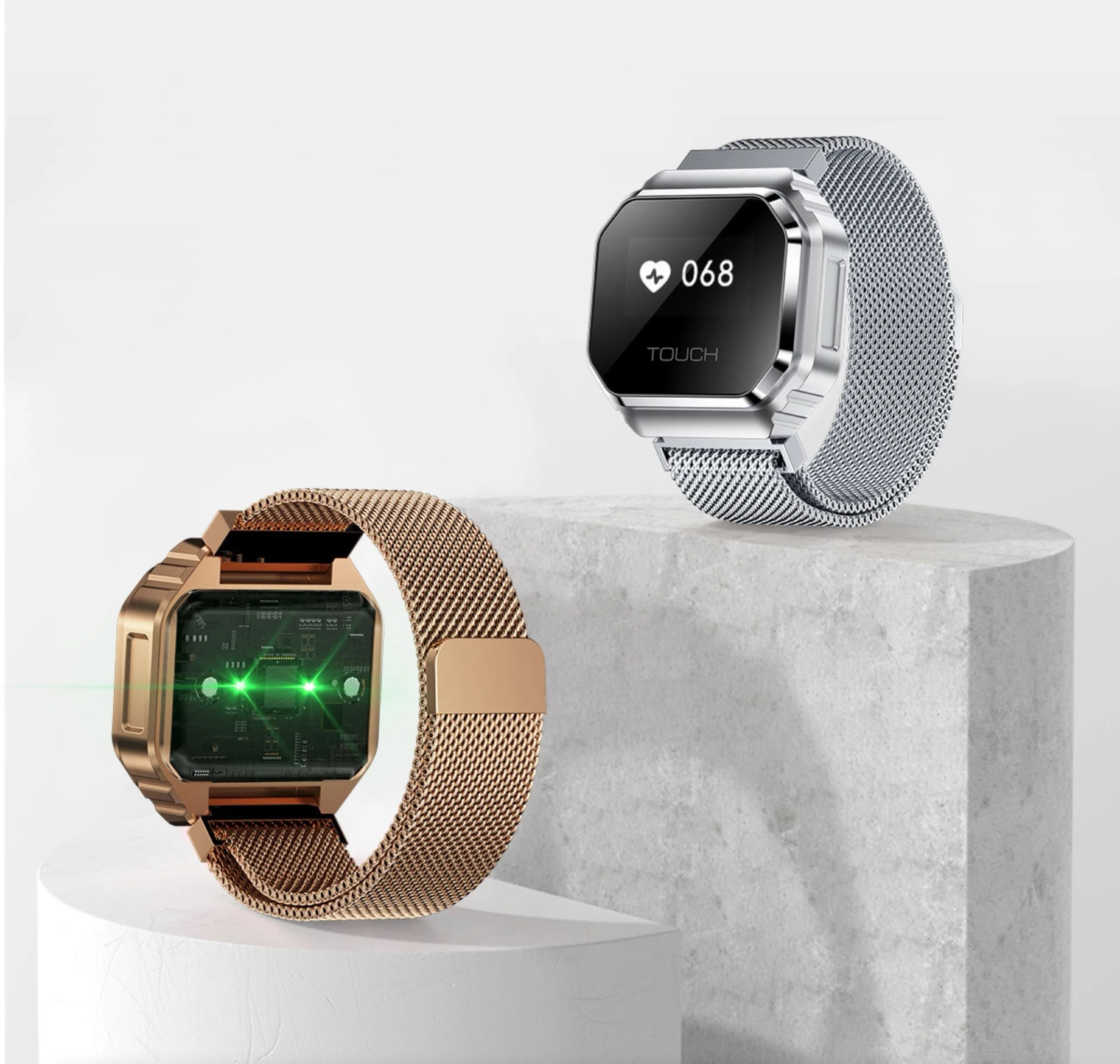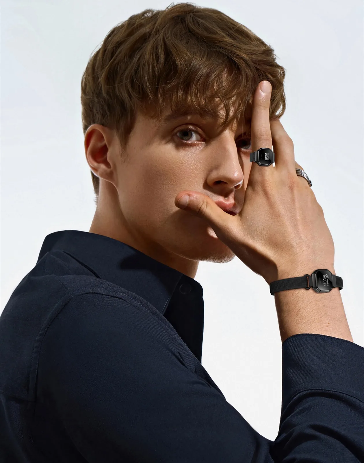 Denn Rogbid Fusion setzt auf ein Milanaise-Band, und ist somit größenverstellbar, sodass der Ring an jeden Finger passen soll. Auf der Vorderseite ist ein 0,49 Zoll OLED-Display zu sehen, das neben Uhrzeit und Datum auch die zurückgelegten Schritte und die Herzfrequenz anzeigen kann. Die Rückseite ist transparent, und beherbergt den Herzfrequenz- und SpO2-Sensor. In Verbindung mit einem Beschleunigungssensor soll Rogbid Fusion über 100 Sportmodi sowie Schlaf- und Zyklus-Tracking beherrschen.