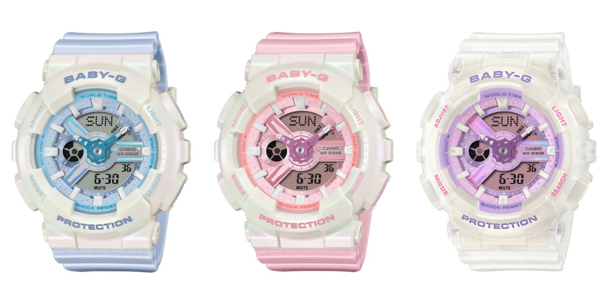 Drei neue Uhren der Casio G-Shock Baby-G BA-100-Serie sind in Japan auf den Markt gekommen. Die Modelle BA-110PD-2A, BA-110PD-4A und BA-110PS-7A sollen auch weltweit erscheinen. Sie setzen auf pastellfarbene Designs und werden vom Hersteller als „hochgradig praktisch und kompromisslos funktional“ beworben.