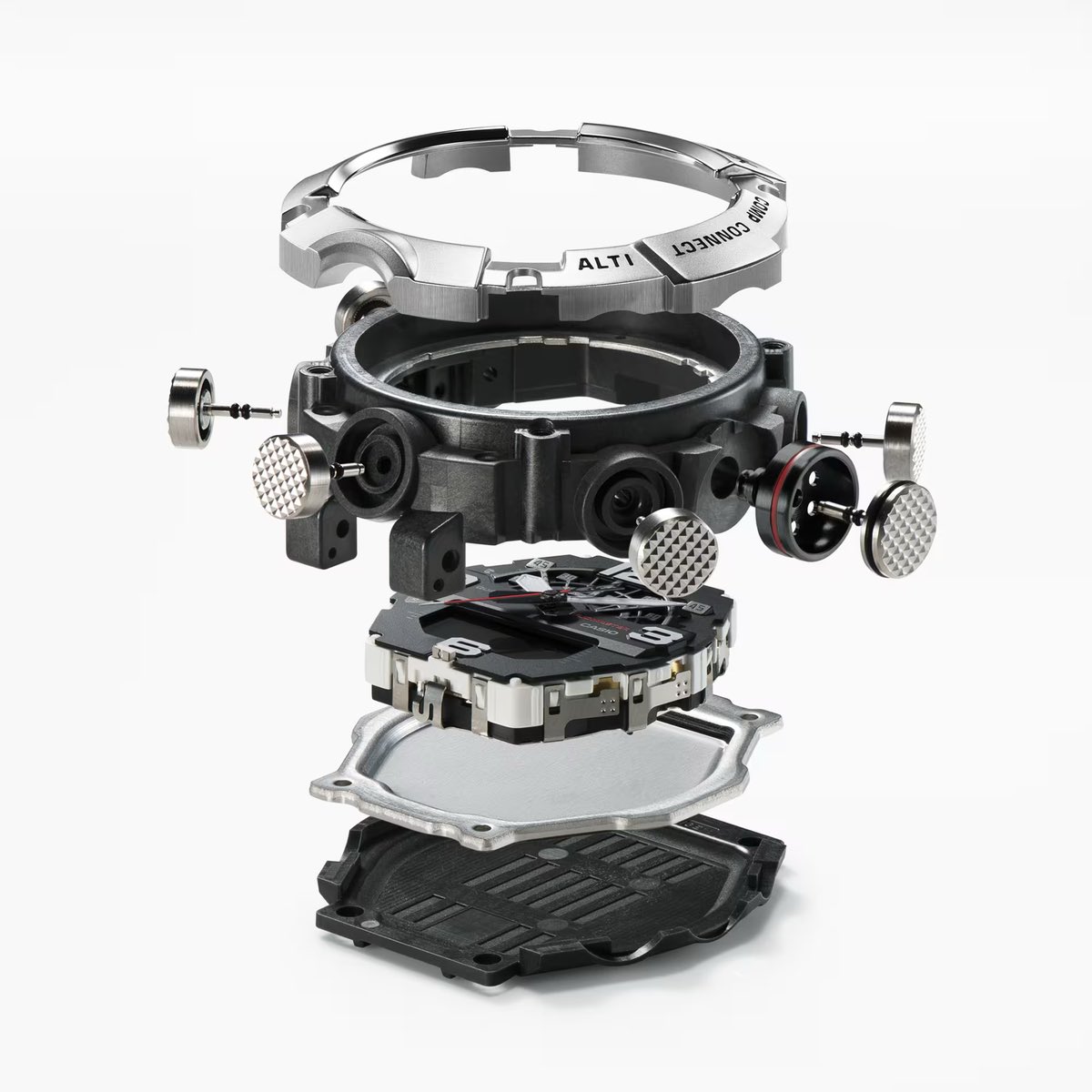 Das silberfarbene Modell GG-B100XM verfügt über ein mattes Finish, das durch ein Honverfahren erzielt wird. Diese Bearbeitung erhöht die Kratzfestigkeit gegenüber Schlamm sowie Staub und reduziert zugleich störende Lichtreflexionen. Die GG-B100XMB hingegen ist mit einer schwarzen IP-Beschichtung und hochglänzender Oberfläche versehen, die dem Modell eine edle, markante Erscheinung verleiht.