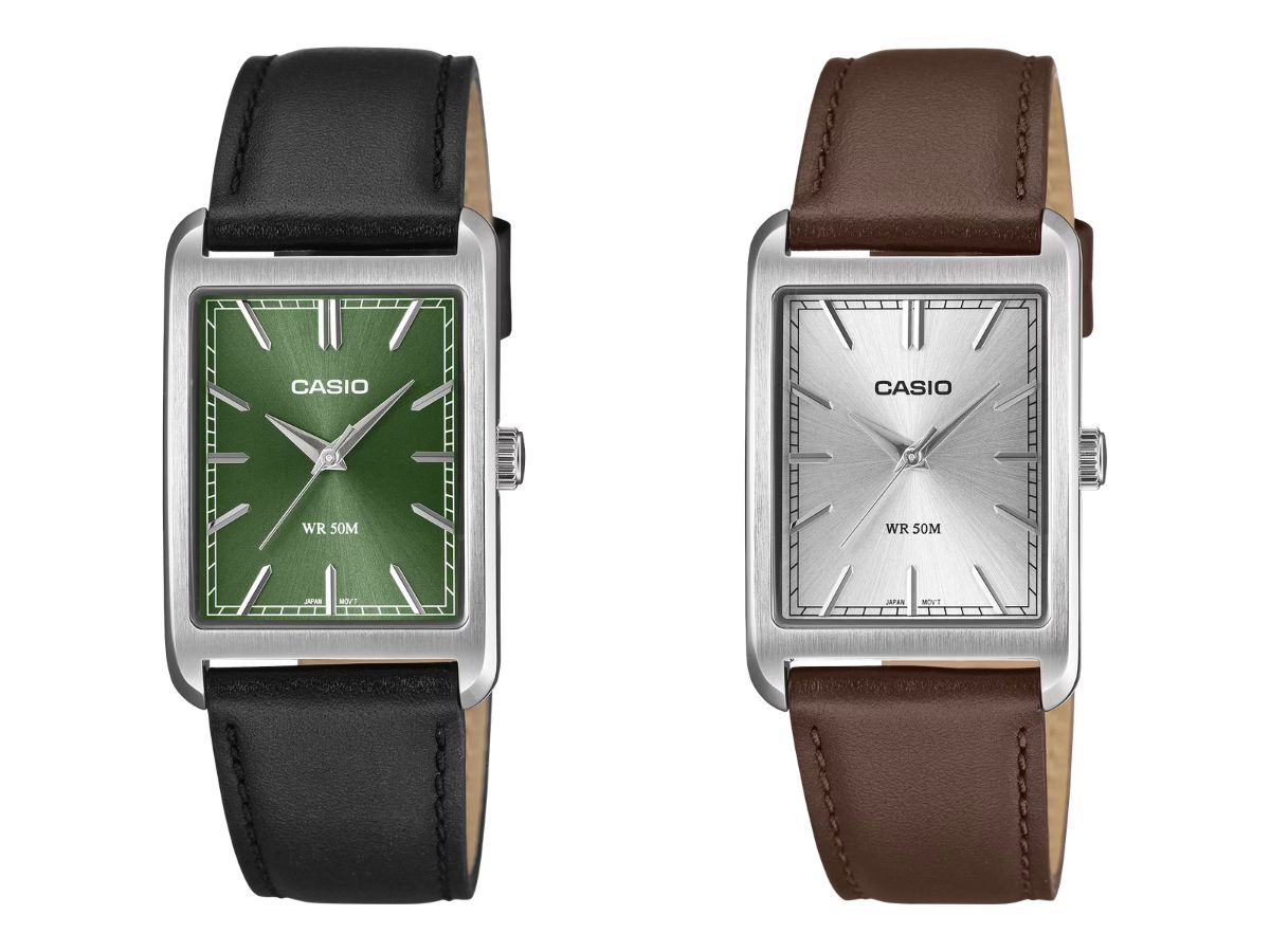 Casio hat sechs neue Uhren der Reihe MTP-B215 vorgestellt, die weltweit auf den Markt kommen sollen. Das Design des analogen Modells ist schlicht: Das rechteckige Zifferblatt verfügt über drei Zeiger und Stabindizes.