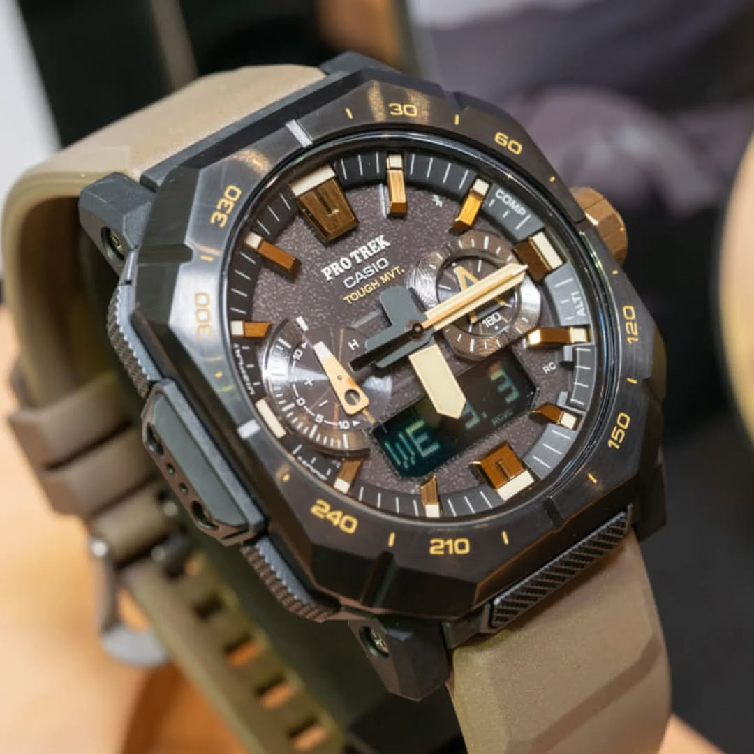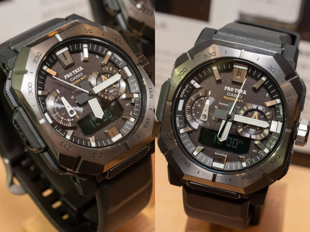 Erste Bilder und Details zum Display von Casios neuer Pro-Trek-Serie PRW-B1000 sind im Internet aufgetaucht (mit freundlicher Genehmigung von @geesgshock auf Instagram). Wir erhalten nun einen tiefen Einblick sowohl in die fertigen Uhren als auch in deren Konstruktion. Dies ist das erste Modell der PRW-B1000-Serie mit Bluetooth, was auch den höheren Verkaufspreis erklärt.