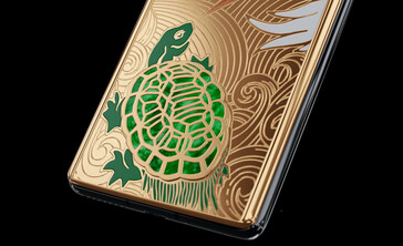 Das Huawei Mate 40 Pro in der "Dragon's Son"-Version ist mit einem Preis von 5.820 Euro deutlich günstiger, dafür aber auch nicht ganz so streng limitiert, denn von dieser Variante werden 16 Stück hergestellt. Statt massivem Gold wurde die Rückseite nur vergoldet, der grüne Ball, den der geflügelte Löwe hält, besteht aber auch bei diesem Gerät aus echter Jade.