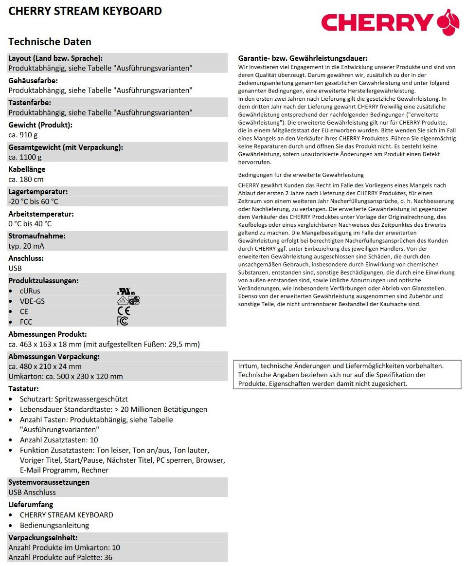 Erhältlich ist das Cherry Stream Keyboard in den Farben Weiß-Grau und Schwarz ab Oktober 2019. Cherry nennt für das brandneue Stream Keyboard eine unverbindliche Preisempfehlung von knapp 30 Euro.