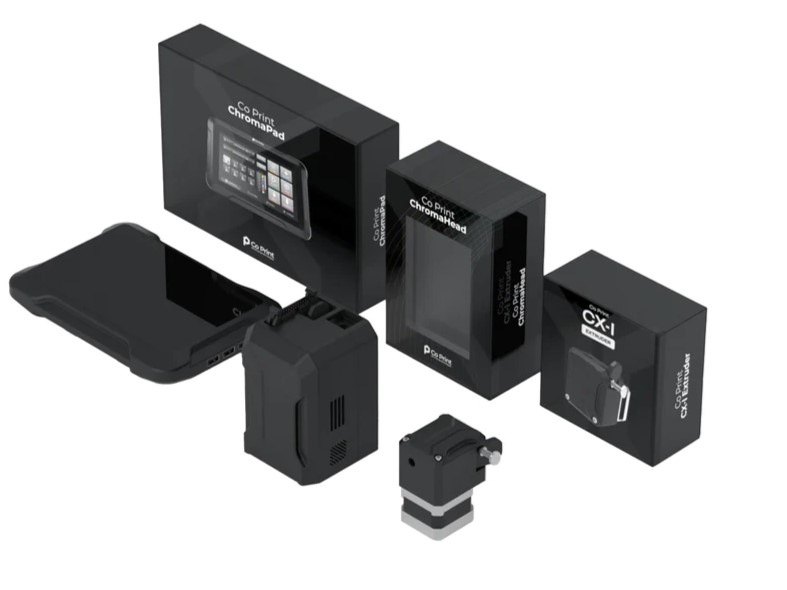 Je nach konkret genutztem 3D-Drucker sind dabei unterschiedliche Geräte nötig. Bei der Nutzung eines Druckers auf Basis von Klipper muss so die Steuerungskonsole CromaPad nicht zusätzlich genutzt werden. Das ChromaPad steuert dann den CX-1-Extruder, wobei mit ChromaScreen auch eine besonders leistungsstarke, Open Source-Software bereitsteht. Über das ChromaPad sollen sich sogar bis zu acht Drucker gleichzeitig steuern lassen, was auch für kommerzielle Anbieter relevant sein dürfte.