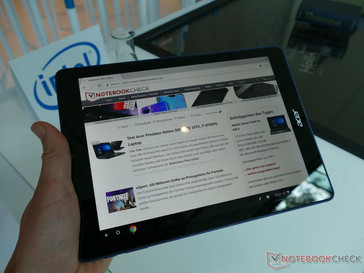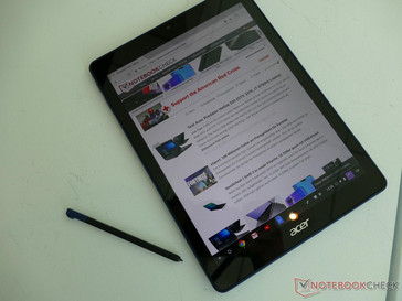 Wie bei den Samsung Galaxy Note-Handys ist der unterstützte Wacom-Stift gleich links unten im Tablet integriert -praktisch. Die Rückseite des Tab 10 ist in dunklem Blau gehalten und fühlt sich gummiert an, was guten Halt bei der Bedienung verspricht. Das IPS-Display leuchtet hell und zeigt kräftige Farben, spiegelt allerdings nicht wenig, was man in unseren Bildern unten auch sehen kann. Neben Zugriff auf den Google Play Store ist das Tablet über die Chrome Management Konsole administrierbar.