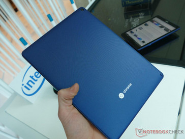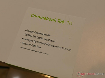 Das ChromeBook Tab 10 basiert auf einem Rockchip RK3399 mit 4 GB RAM und 32 GB Speicher, das 9,7 Zoll-Display liefert hochauflösende 2.048 x 1.536 Pixel Auflösung, also exakt so viel wie das gleich große iPad von Apple, mit dem es wohl direkt konkurriert. Neben Kopfhöreranschluss und USB-C-Port gibt es einen Micro-SD-Kartenslot zur Speichererweiterung an der Seite. Direkt darüber befinden sich Lautstärkeregler, eine LED sowie der Einschaltknopf.
