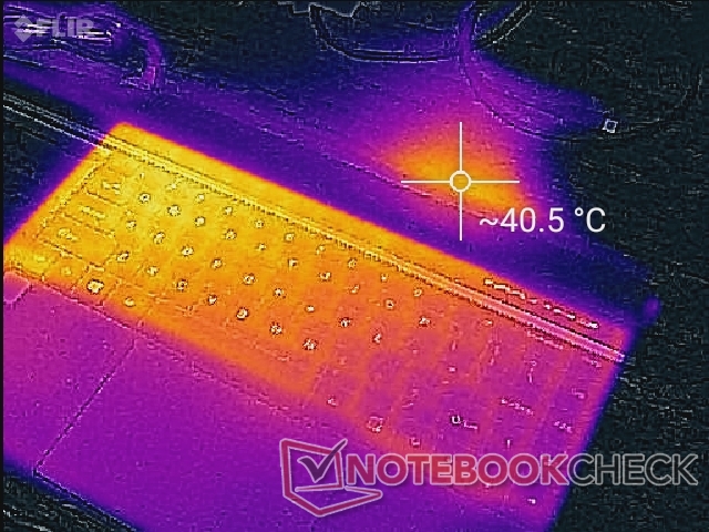 (+) Die Handballen und der Touchpad-Bereich erreichen maximal 32.4 °C und damit die typische Hauttemperatur und fühlen sich daher nicht heiß an.