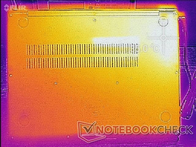 (-) Auf der Unterseite messen wir eine maximalen Wert von 47.6 °C (im Vergleich zum Durchschnitt von 39.3 °C).