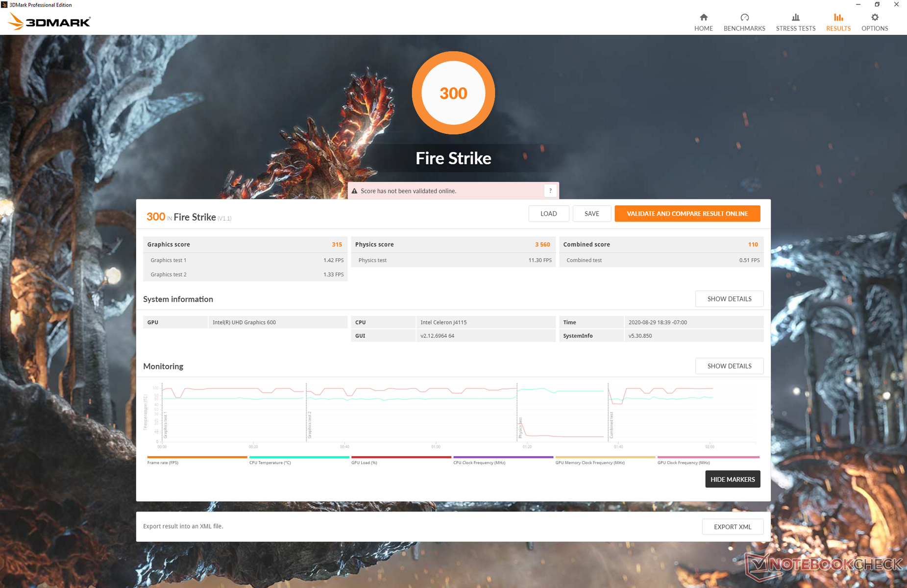 | 3DMark Fire Strike Score | 300 Punkte | |