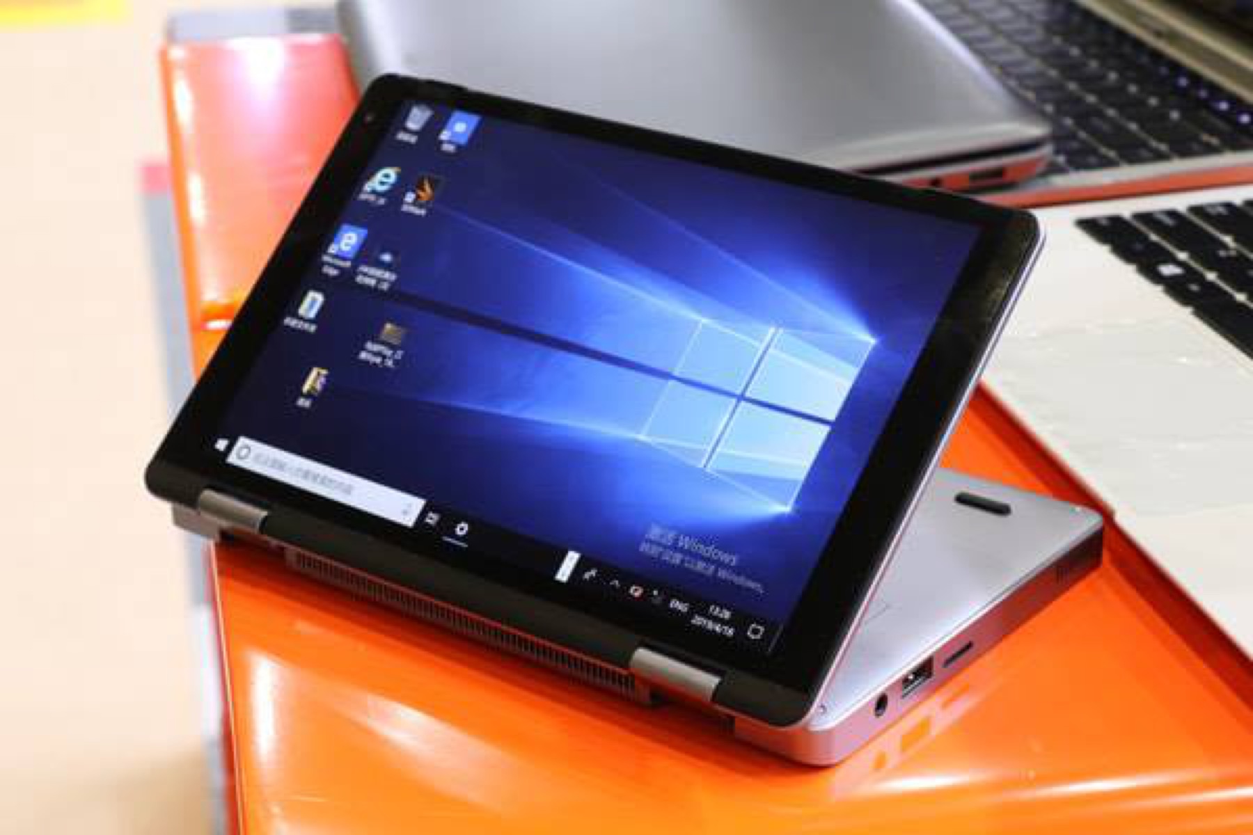Das Chuwi MiniBook kommt mit einem 8 Zoll großen Touchscreen mit IPS-Panel und einem Scharnier, welches die Nutzung als Convertible im Stand- oder Tabletmodus erlaubt. Der Hersteller beschreibt die Tastatur als "Full Size", was aber alleine schon im Hinblick auf die kleine Rücktaste nach schamloser Übertreibung aussieht. Noch unklar ist, ob die Tastatur auch mit deutschem QWERTZ-Layout verfügbar sein wird.