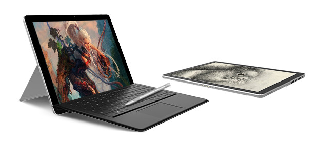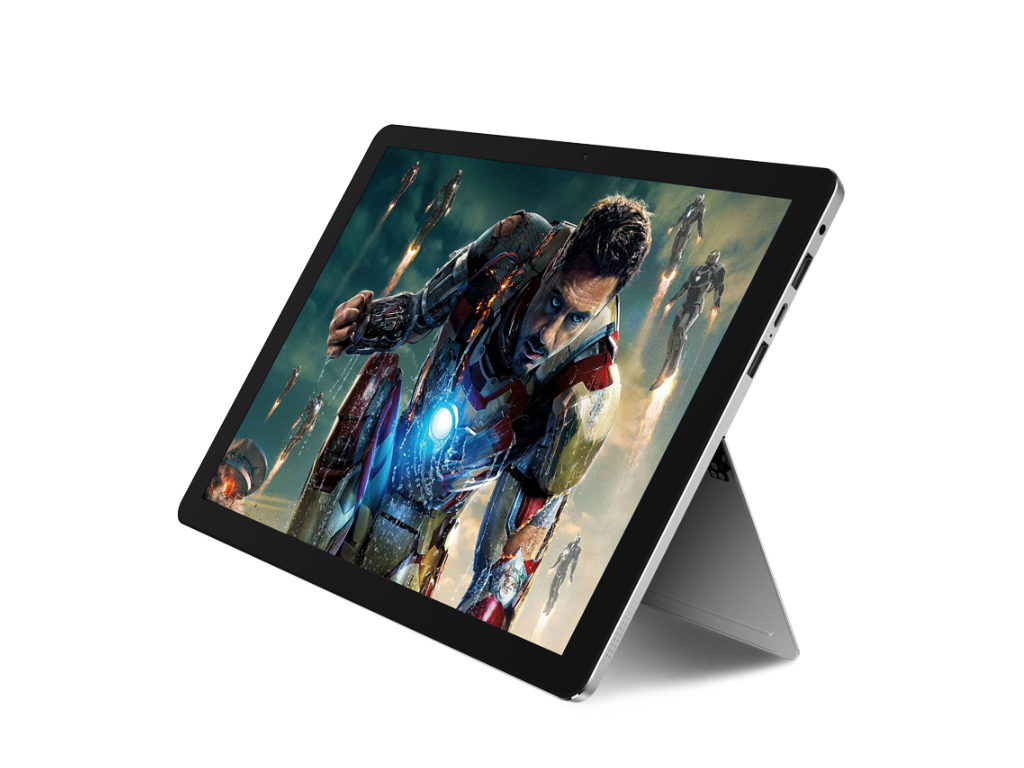 Das Chuwi SurBook entstand als Indiegogo-Kampagne und wurde als günstiges 2-in-1 PC-Tablet mit Intel-Prozessor vorgestellt. Es sieht wie eine fast exakte Nachbildung des Microsoft Surface Pro 4 aus, bloß ohne den hohen Preis. Das SurBook hat die gleiche Bildschirmdiagonale (12,3 Zoll) und die gleiche Bildschirmauflösung (2736 x 1824 Pixel) wie das Surface Pro 4. Das Gehäuse besteht aus einer Magnesiumlegierung und ist leicht, robust sowie ein sehr guter Wärmeleiter, was definitiv ein Bonus ist. Da das SurBook keine Lüfter hat, befinden sich auf dem Gerät auch keine Gitter, abgesehen von den Lautsprechergittern auf jeder Seite des Tablets. Somit verbreitet sich Wärme im ganzen Gehäuse, das dann als großer Kühlkörper agiert. Das Display mit einem 3:2-Seitenverhältnis ist von einem 15-18 mm breiten Rahmen umgeben - er ist dünn genug, um beinahe unauffällig zu sein. Auf der Oberkante des Gerätes befinden sich die Wippe zur Lautstärkeeinstellung sowie die Power-Taste. Auf der rechten Seite sind vier Schnittstellen platziert (2x USB Typ-A, eine Audiobuchse und ein USB-Typ-C-Anschluss). Da es keine HDMI-Schnittstellen gibt, kann man externe Bildschirme nur mit einem Adapter anschließen. Als Prozessor wählte Chuwi Intels vierkern 4-thread Apollo Lake N3450 Prozessor neuester Generation, der Ende 2016 eingeführt wurde. Es ist die ideale Wahl für 2-in-1-Tablets und leichtgewichtige Laptops, da er fantastische Leistung zu einem sehr guten Preis bietet. Verglichen mit der vorherigen “Cherry-Trail”-Generation bekommt man 30 Prozent mehr Leistung und längere Akkulaufzeiten dank präzise abgestimmter Energieverwaltung. Das SurBook kommt getrost mit allen möglichen alltäglichen Aufgaben klar, wie etwa Arbeiten, Shoppen oder Gamen. Letzteres wird von Intel Generation 9 HD Graphics unterstützt, weshalb es bei HD-Videos und 3-D-Spielen keine Probleme gibt.