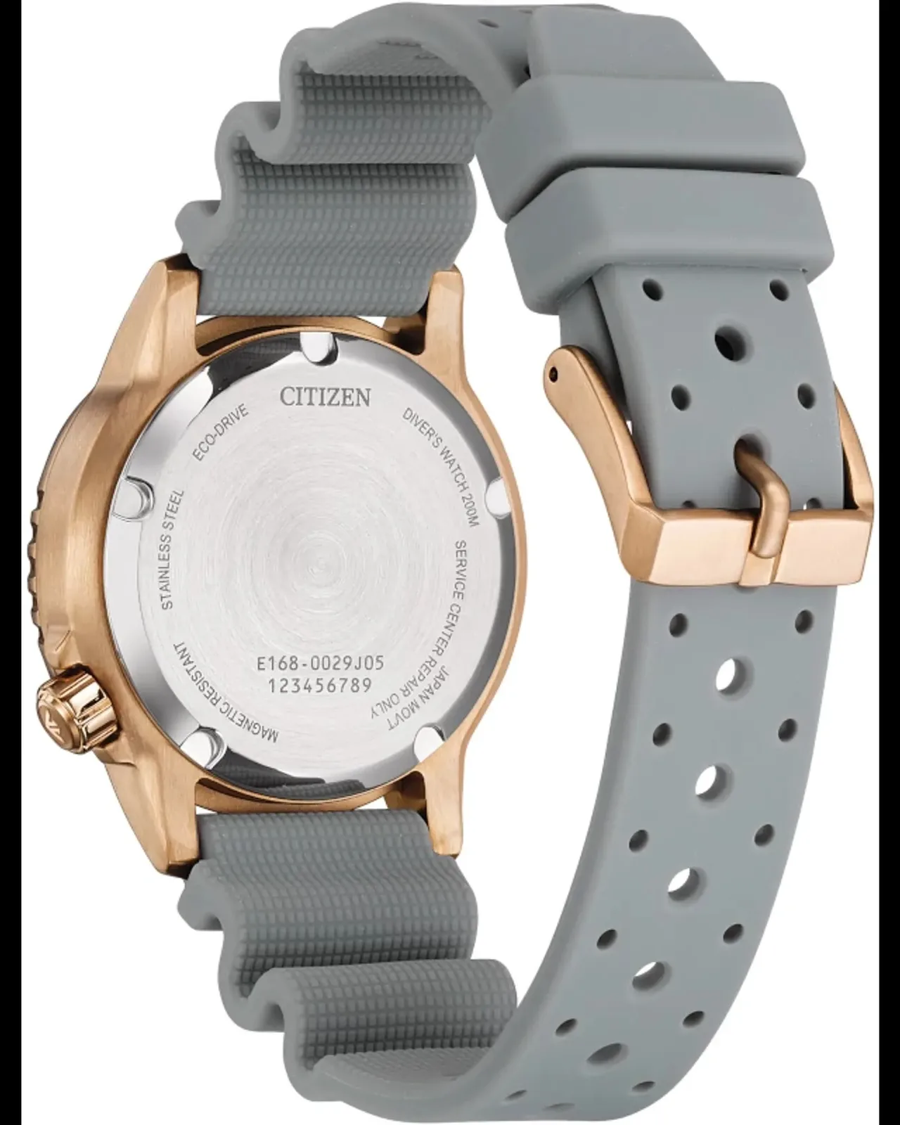 Die BN0167-09W besitzt ein 44-mm-Edelstahlgehäuse mit silberfarbenem Finish und wird mit einem dunklen Armband kombiniert. Die EO2023-00W fällt mit 36,5 mm deutlich kompakter aus und verfügt über ein roségoldfarbenes Gehäuse sowie ein helles Armband. Abgesehen von Größe und Farbgebung teilen sich beide Modelle das gleiche Grunddesign. Im Inneren arbeitet das lichtbetriebene Citizen Eco-Drive-Uhrwerk E168. Zur Ausstattung zählen außerdem eine Wasserdichtigkeit bis 200 Meter, eine einseitig drehbare Lünette sowie ein Datumsfenster bei 3 Uhr. Laut Produktbeschreibung kommt bei der BN0167-09W Mineralglas zum Einsatz; die EO2023-00W dürfte dieselben Spezifikationen bieten.