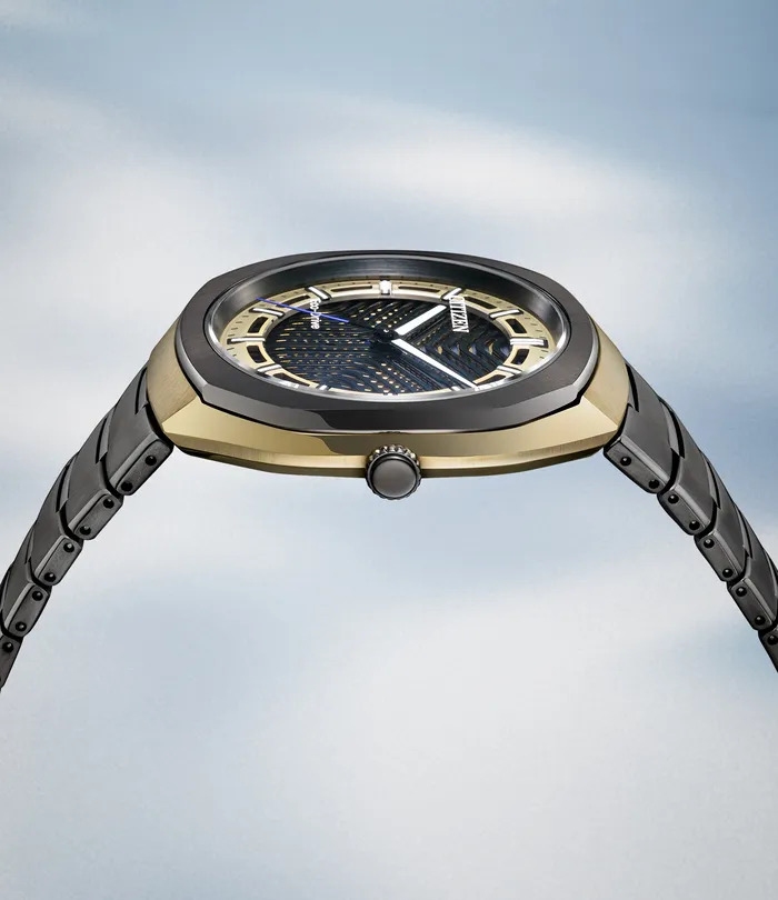 Das Herzstück der neuen Serie ist das mehrschichtige Zifferblatt. Citizen verwendet zwei übereinanderliegende Metallschichten mit schlitzförmigen Öffnungen, wodurch ein interferenzähnliches Muster entsteht. Darunter befindet sich ein Strukturfarbfilm, der über der Solarzelle platziert ist. Wenn Licht durch die Schlitze fällt, erzeugt das Zifferblatt je nach Blickwinkel wechselnde Farben. Dadurch entsteht ein sichtbar dreidimensionaler Effekt, der sich in Echtzeit verändert.