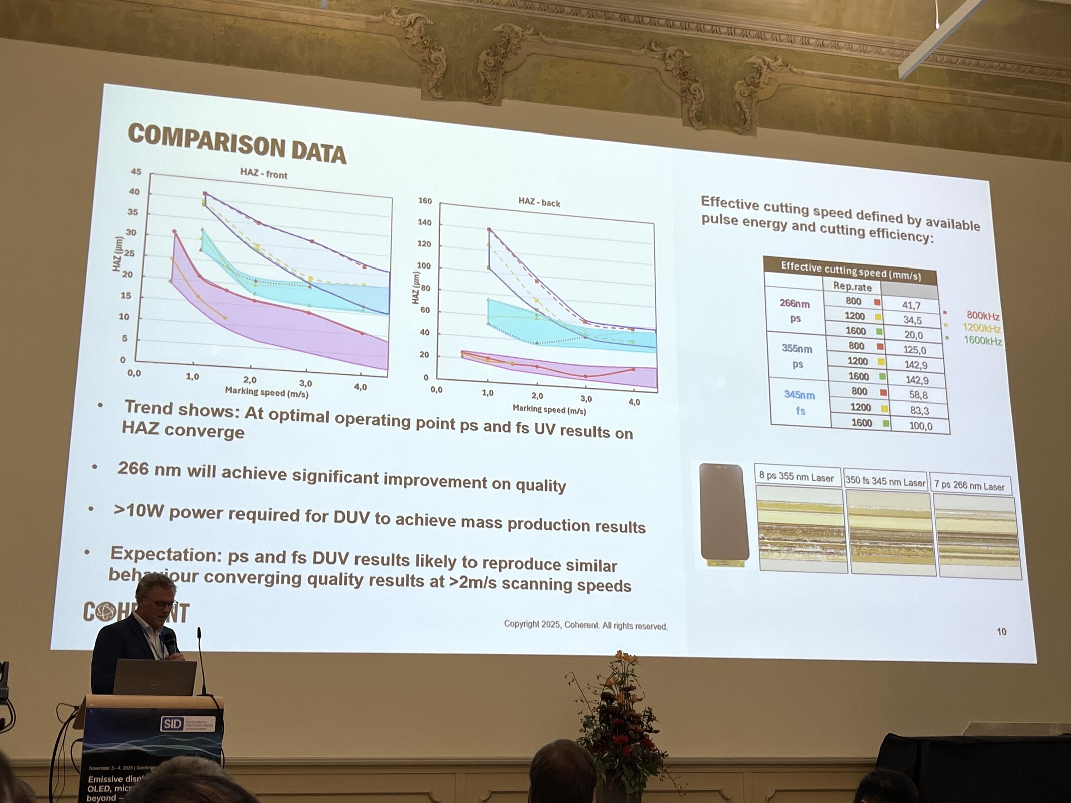 Coherent, der Gastgeber der Mid-Europe Chapter Conference der Society of Information Display (SID-MEC Conference) in Göttingen, hat auf eben jener Konferenz zum Abschluss einen Einblick in seine Pläne für das bessere Zuschneiden von Displays gegeben. Als Anbieter von Laser-Lösungen ist das Göttinger Unternehmen nicht nur auf das Annealing als Vorstufe der Display-Produktion spezialisiert, sondern kümmert sich auch um Werkzeuge für den späteren Zuschnitt der Displays.