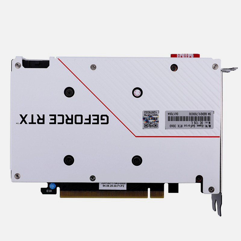 Die Grafikkarte bietet 12 GB GDDR6-Grafikspeicher an einem 192-bit-Interface bei einer Bandbreite von 360 GB/s. Die Stromversorgung erfolgt über einen einzelnen 8-Pin-Stecker, Colorful spezifiziert eine TGP von 170 Watt, für das ganze System empfiehlt der Hersteller folglich ein Netzteil mit einer Ausgangsleistung von mindestens 550 Watt.