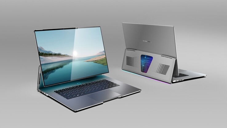 Da dieser Teil des Laptops beim Betrieb hinter dem Bildschirm verschwindet, sieht der Compal Veneno extrem dünn aus, zumindest für Gaming-Laptop-Verhältnisse. Der Bildschirm wird nicht an der unteren Kante befestigt, sondern deutlich höher, was dem Panel einen "schwebenden" Look verleiht. Die Lüftungsschlitze befinden sich bei Nutzung des Laptops hinter dem Bildschirm, statt auf der Unterseite, was den Luftstrom und damit die Kühlung verbessern soll.