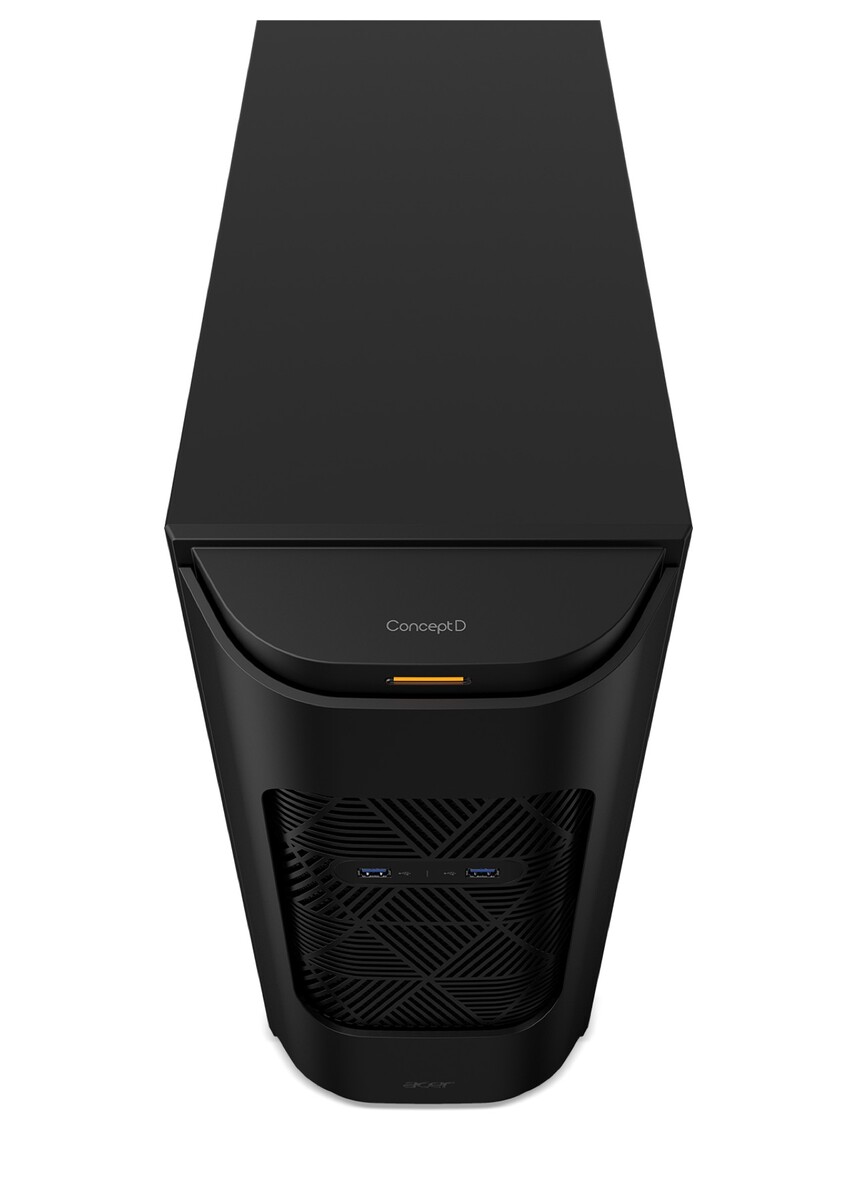 Die Ausstattung wird durch zwölf RAM-Slots für bis zu 192 GB ECC-Arbeitsspeicher und zwei M.2 PCIe SSDs sowie fünf HDD-Slots abgerundet. Für Erweiterungen stehen drei PCIe x8 und vier PCIe x16 Slots zur Verfügung. Um das alles kühlen zu können verbaut Acer sechs Lüfter, die das minimalistisch gestaltete Gehäuse gut durchlüften sollen. Das mattschwarze Äußere wird lediglich durch die bernsteinfarbene LED beim Power-Button akzentuiert.