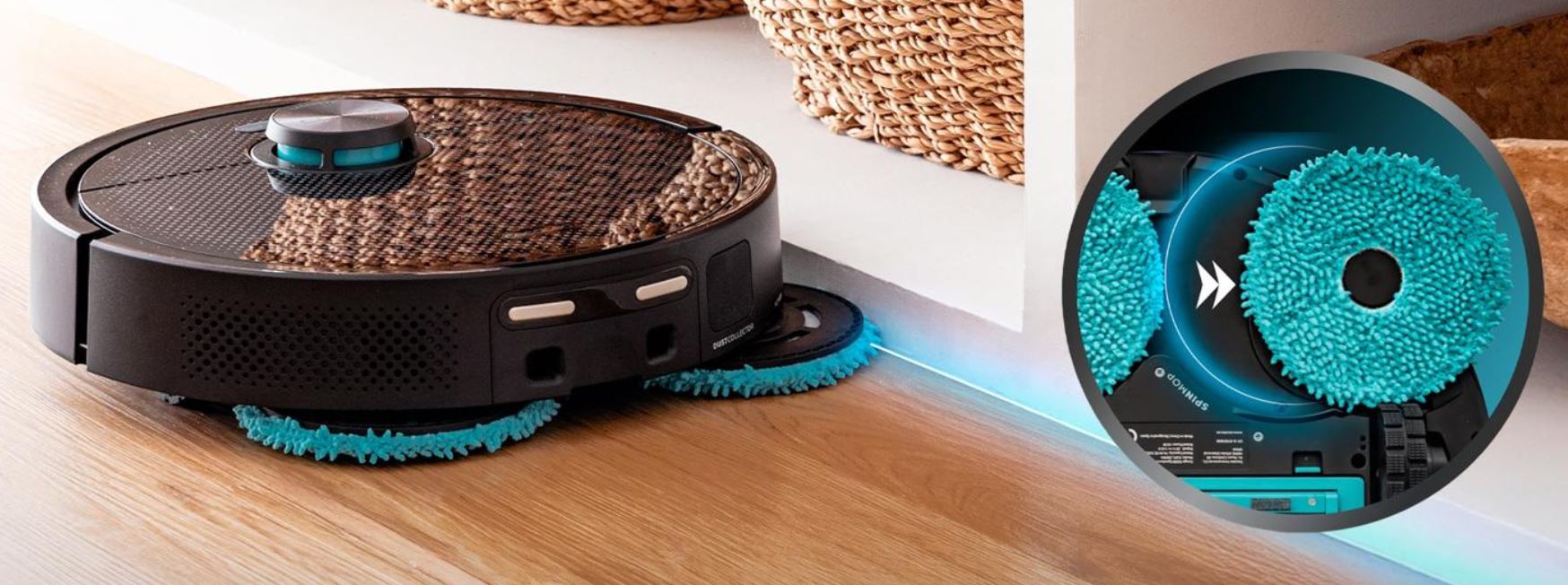 Die rotierenden Wischmopps können dabei in der Basisstation nicht nur gereinigt, sondern auch getrocknet werden, wodurch sich die Verschleppung von Schmutz zumindest zwischen verschiedenen Reinigungsaufträgen und die Entstehung von schlechten Gerüchen verhindern lassen soll. Wird via Ultraschall ein Teppich erkannt, können die Wischmopps um bis zu 10 Millimeter angehoben werden. Durch die Staubabsaugung und die Nachfüllung von Wasser in der Basisstation soll sich eine Unabhängigkeit für bis zu 12 Wochen ergeben.