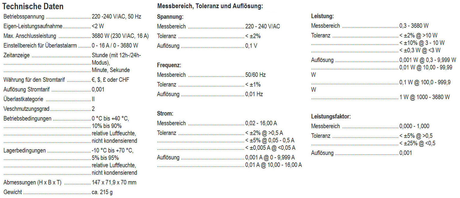 Das Voltcraft SEM5000 wird einfach zwischen Steckdose und Verbraucher platziert, um Spannung, Strom, Energieverbrauch sowie Frequenz und Leistungsfaktor zu messen. Alle Energiedaten können direkt auf dem Display abgerufen werden. Die Auswertung und Weiterverarbeitung der CSV-Daten kann dann via Computer erfolgen, zum Beispiel in Form von Diagrammen. Nach Eingabe des aktuellen Stromtarifs im Voltcraft SEM5000 werden die tatsächlichen Energiekosten in der ausgewählten Währung angezeigt.