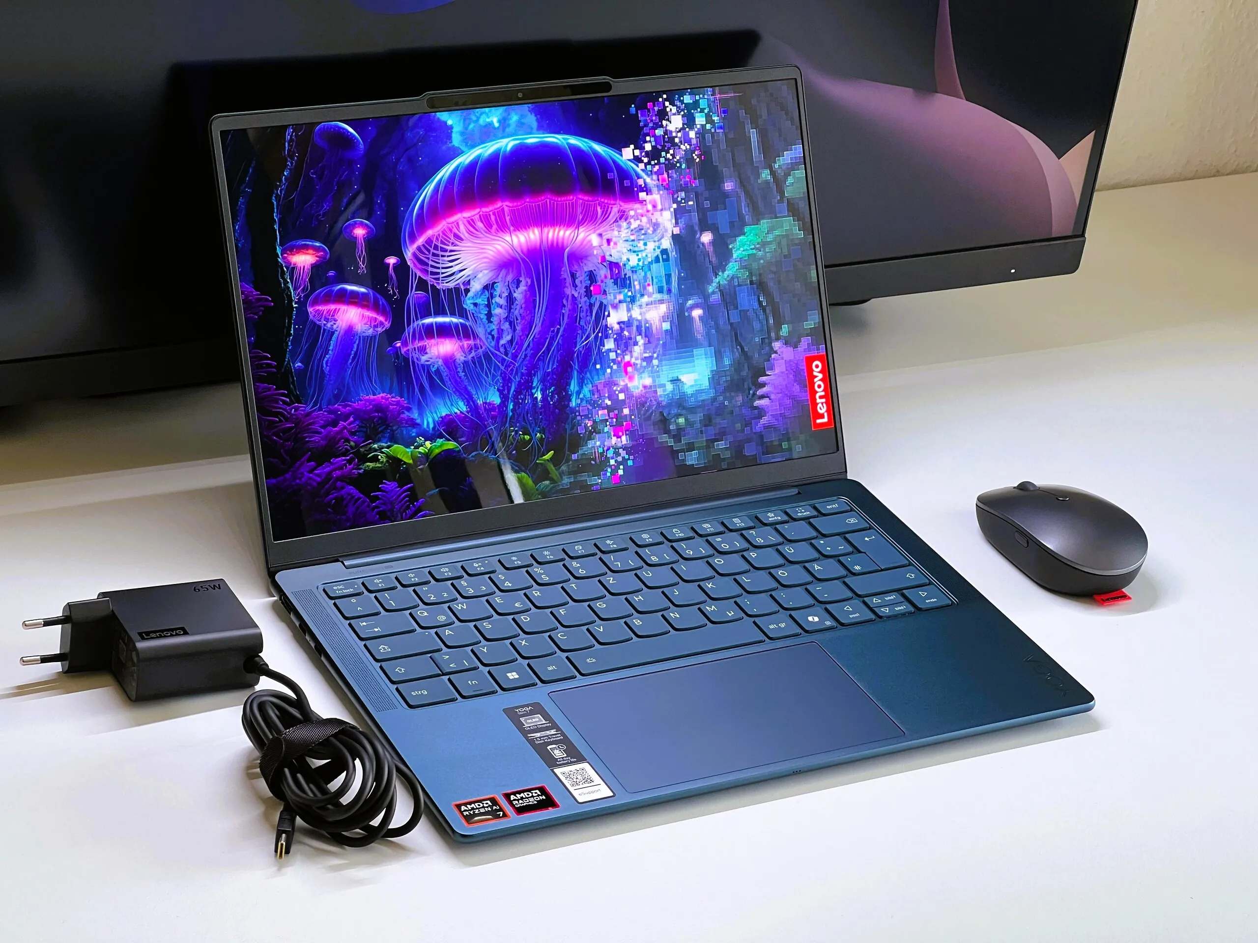 Lenovo verbaut einen 14-Zoll-Bildschirm im arbeitsfreundlichen 16:10-Format, der über eine native Auflösung von 1.920 x 1.200 Bildpunkten verfügt. Das OLED-Panel bietet einen hervorragenden Schwarzwert, kurze Reaktionszeiten und eine maximale Helligkeit von 600 Nits (HDR). Weiterhin deckt es den DCI-P3-Farbraum ab und unterstützt Dolby Vision.