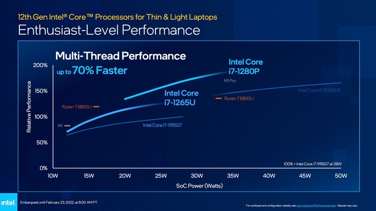 Das macht die Klassifizierung recht schwierig, denn je nach Laptop konkurrieren die neuen Alder-Lake-P-Modelle entweder mit den traditionellen U-Serie-Chips, teilweise sind sie aber auch schon ganz klar im Bereich von Intels eigenen H-Serie-CPUs wie dem Core i7-12700H.