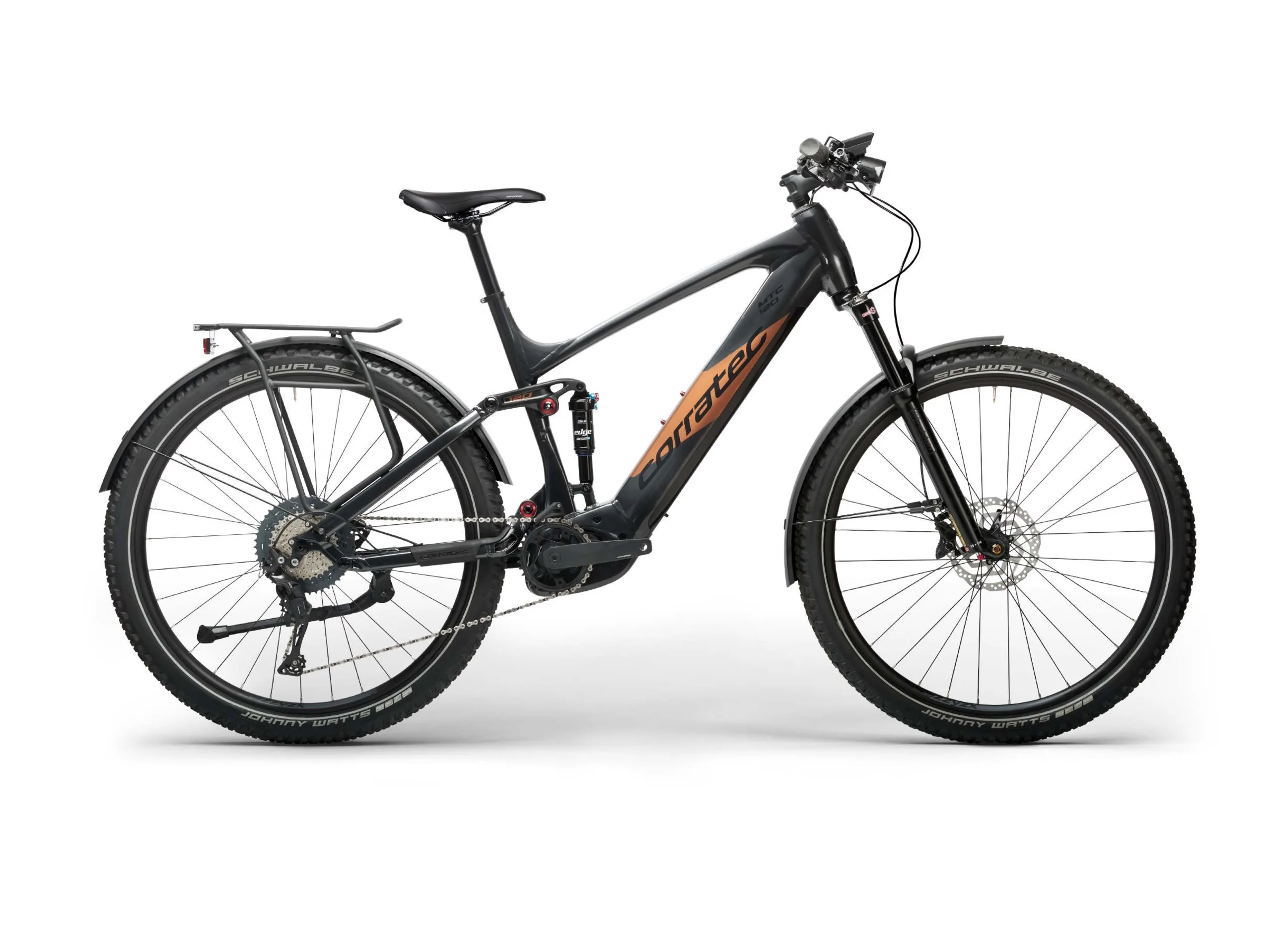 Der Hersteller Corratec bietet mit dem E-Power MTC 120 Pro ein E-Bike an, welches sich quasi für alle Anwendungsfälle eignen dürfte - für den typischen Pendelweg in der Stadt aber wahrscheinlich zu schade ist. Konkret handelt es sich im Grunde um ein Fully-Mountainbike, welches aber auch die von Trekkingfahrrädern bekannte Ausstattung mitbringt. Im Resultat eignet sich das E-Power MTC 120 Pro damit nicht nur für das Gelände, sondern auch für längere Touren oder das Bikepacking. Der Gepäckträger ist dabei mit einem Gewicht von bis zu 25 Kilogramm belastbar, dabei bringt dieses auch gleich ein Rücklicht mit. Ein Frontscheinwerfer ist ebenfalls verbaut.