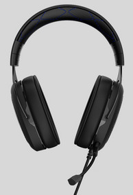 Corsair stellt mit dem HS50 einen einfachen Stereo-Over-Ear-Headset ohne überflüssiges Schnickschnack vor. Das Gaming-Headset ist in drei Farbgebungen erhältlich: Blue, Carbon (schwarz) und Green. Je nach gewählter Farbe ziert ein entsprechender und dezent um das schwarze Gitter der Ohrmuscheln angebrachter Farbring das Headset. Das war's. Farbliche Beleuchtungseffekte gibt es beim Corsair HS50 nicht.