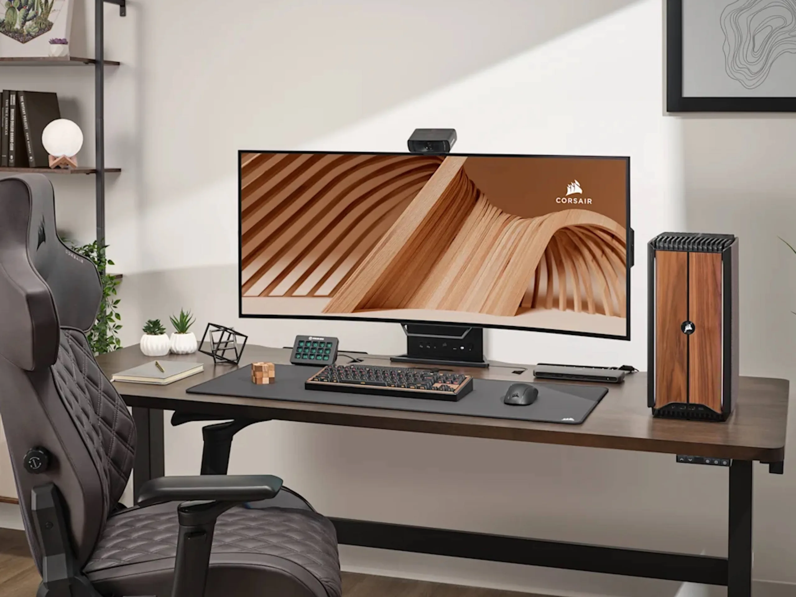 Corsair hat zur beziehungsweise um die Gamescom herum nicht nur einen, sondern gleich zwei kompaktere Systeme vorgestellt oder zumindest in Deutschland lanciert. Beim Corsair One a600-PC handelt es sich um einen PC, welches zumindest in der Wood Dark-Edition bereits auf den ersten Blick durchaus auffällt: Die Front kommt so mit einer Akzentplatte aus Holz, das Gehäuse selbst besteht aus recyceltem Aluminium. Da mit Holz ein Naturprodukt verwendet wird, ist die Optik ein Stück weit immer einmalig.