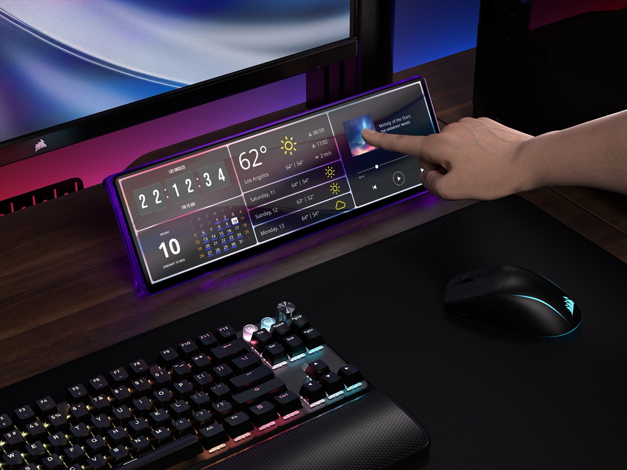 Corsair Xeneon Edge soll auch vielseitiger sein, denn der Touchscreen kann nicht nur auf dem Schreibtisch platziert werden, mit einem separat erhältlichen Montage-Kit ist es auch möglich, den Bildschirm im Gehäuse eines Gaming-Towers zu montieren. Die Corsair iCue-Software erlaubt es, zahlreiche Widgets auf dem Touchscreen zu platzieren, um etwa schnell Apps zu öffnen, die System-Auslastung anzuzeigen oder die Musikwiedergabe zu steuern. Der Anschluss an den Computer erfolgt wahlweise über USB-C oder über HDMI.