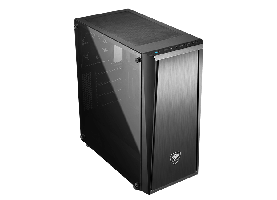 Das 20,8 x 45,0 x 40,5 Zentimeter große MX340 kommt mit einem vergleichsweise schlichten Design, wobei die durchgängige Front durch zwei angeschrägte Elemente in Szene gesetzt wird. Die linke Gehäuseseite ist mit einem Fenster aus getemperten Glas abgedeckt.