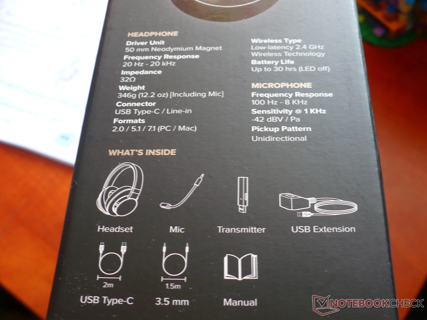Beim Verpackungsinhalt gibt sich Creative recht großzügig, wobei ein Set an Ersatz-Ohrpads durchaus willkommen gewesen wäre. Manch einer wird womöglich auch eine Tragebox oder eine Hülle vermissen, aber ich denke, dass dies für ein so großes Headset deutlich weniger wichtig ist als für In-Ear-Hörer. Neben dem Headset liegt der Box ein USB-Dongle, ein 3,5-mm-Line-In-Kabel (könnte vor allem in ein paar Jahren hilfreich sein, wenn der Akku tot ist und nicht ersetzt werden soll, aber auch jetzt sehr praktisch zum verbinden mit Geräten mit einem 3,5-mm-Klinkenanschluss), ein abnehmbares und sehr flexibles Gaming-Mikrofon, ein USB-C-Kabel zum Aufladen sowie ein separates USB-Verlängerungskabel bei, welches für viele Anwendungsfälle sehr nützlich sein kann.