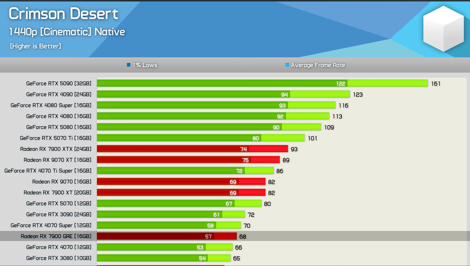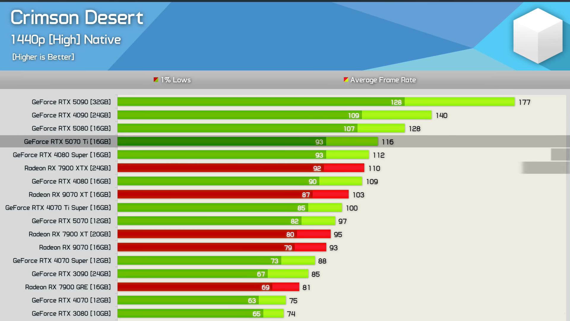 Um in 1440p mit den maximalen „Cinematic“-Einstellungen über 60 FPS zu bleiben, benötigt man Karten wie die RTX 5060 Ti oder die RX 7800 XT. Die RTX 5070 und die RX 9070 erreichen im Durchschnitt etwa 80 FPS, die RTX 5070 Ti sogar 100 FPS.