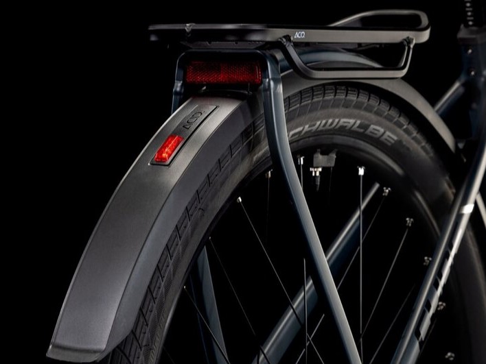Eine Federgabel mit einem Federweg von 100 Millimetern ist vorhanden, die Sattelstütze bietet ebenfalls eine Federung. Das rund 28,5 Kilogramm schwere E-Bike kommt mit Schutzblechen, einer Beleuchtung und einem Gepäckträger und auch ein Fahrradständer fehlt nicht. Vorne und hinten sind hydraulische Scheibenbremsen mit 180 Millimeter großen Bremsscheiben vorhanden.