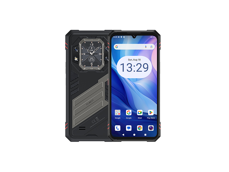 EN→DECUBOT KINGKONG X PRO is truly a durable smartphone with a distinctive design tailored for an active lifestyle and extreme conditions. With a robust 10,200 mAh battery, the phone can be used for up to three days without recharging, making it an excellent choice for users who need reliability and longevity in their device. The MediaTek Dimensity 8200 processor, 12 GB of RAM, and a generous 256 GB of internal storage ensure smooth system performance and quick app switching. Additionally, the small secondary screen on the back displays essential notifications, time, battery level, and allows users to control music or calls. This feature acts like a mini smartwatch, enabling users to check information quickly without needing to unlock the main screen.