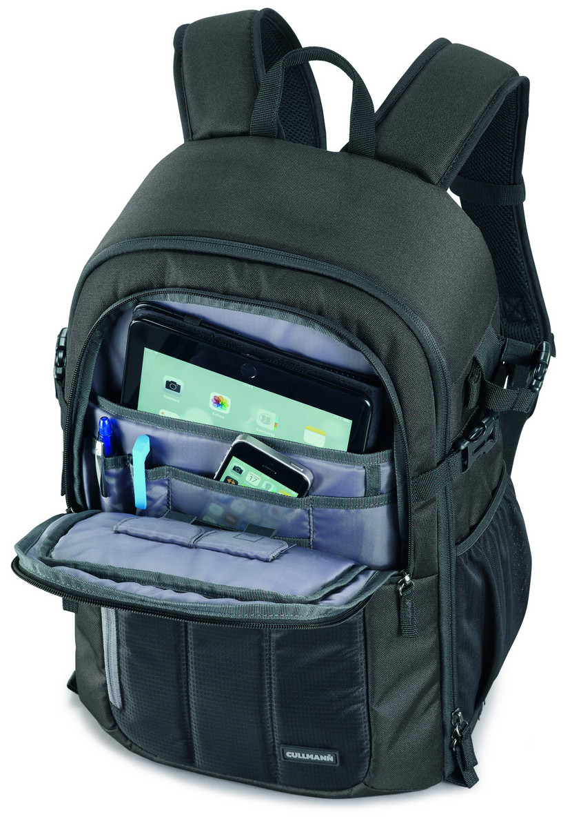Tragevorrichtung für ein Stativ sowie eine Außentasche mit Gummizug beispielsweise für Trinkflaschen angebracht. Die Bristol Maxima 322+ und die BristolMaxima 333+ haben ein integriertes Tabletfach, der BristolDayPack 600+ ein Notebookfach. Als Preise nennt Cullmann 60 Euro für die Bristol Maxima 322+, 70 Euro für die Bristol Maxima 333+ und 90 Euro für den DayPack 600+ (alles UVPs).