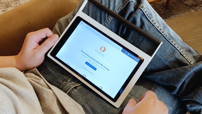 Das 21,3 x 17,66 x 1,2 Zentimeter große Gerät ist mit einem acht Zoll großen IPS-Display ausgestattet, welcher mit 1.280 x 800 Pixeln auflöst. Das Gehäuse ist mit einem speziellen Griff ausgestattet, der auch als Ständer genutzt werden kann. Der mobilen Nutzung steht dank einem integrierten, 5.000 mAH starken Akku nichts im Weg.