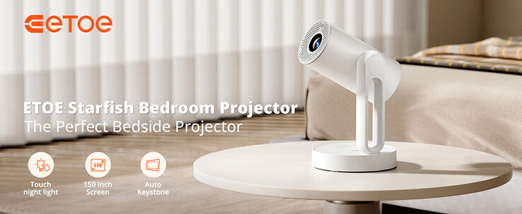 Der Etoe Starfish Projektor löst mit 720p auf und erreicht eine Helligkeit von 300 ANSI Lumen. Er ist flexibel einstellbar und kann ein bis zu 150 Zoll großes Bild an Wand oder Decke projizieren. Autofokus und Keystonekorrektur optimieren die Wiedergabe, während Android TV 11 die Installation von zahlreichen Streaming-Apps ermöglicht. Alternativ kann der Beamer auch als Lampe genutzt werden.